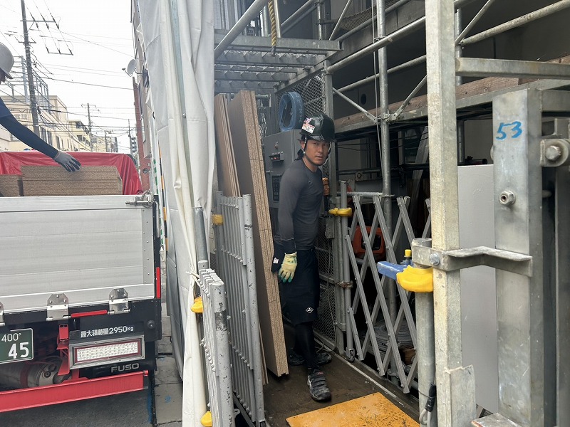 高層階や大規模現場で活躍するのが「仮設エレベーター」を使った搬入方法です。建物の外側や内部に設置される昇降機を利用し、資材を効率よく上層階まで運び入れます。大量の資材を一度に運搬できるため、時間短縮と作業負担の軽減につながるのが大きな利点です。階段での手運びが難しい重量物やかさばる資材も、仮設エレベーターなら安全にスピーディーに搬入可能。作業効率の向上だけでなく、作業員の体力面の負担軽減にも大きく貢献しています。